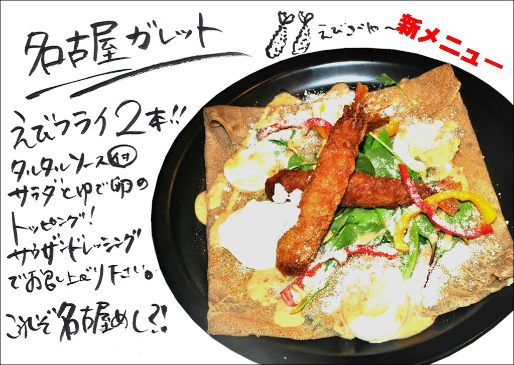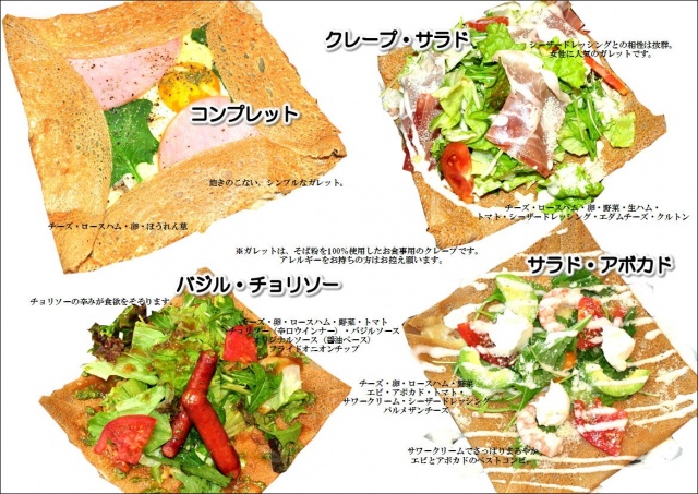 カフェ 投稿日2015.10.17 ◇ガレット新メニュー◇ この記事は、投稿から半年以上が経過しています。 料金やサービス内容など、現在のサービス内容と異なる場合がございます。 ランチタイム11:00~14:00 新メニュー【名古屋ガレット】と【エビクリームガレット】は 10月19日からの販売となります。 【コンプレット】 【クレープ・サラド】 【バジル・チョリソー】 【サラド・アボカド】 は通常のランチメニューとなります。 ランチ 1500円 日替わりスープ お好きなお飲物 お好きなガレット ケーキorジェラート ※ケーキはお持ち帰り可能です。 モーニング・ランチ等のカフェのご予約も承っております。 お気軽にご相談下さいませ。