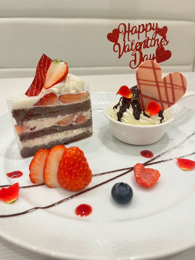 カフェ 投稿日2026.01.16 ◇バレンタインメニュー◇ ヴァイスべーレンカフェのバレンタイン限定メニューです!!! 2月14日までの期間限定で、ケーキプレートがバレンタイン仕様になっています(*^^*) ケーキプレートは、ケーキ代金+300円でご注文いただけます♪ ソフトクリームやフルーツ、チョコレート飾りが付いた豪華なケーキプレートです! ぜひご賞味ください(^^♪