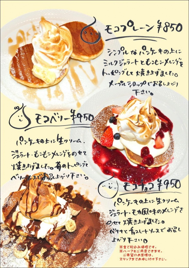 カフェ 投稿日2016.04.21 ☆モコパンケーキ☆ この記事は、投稿から半年以上が経過しています。 料金やサービス内容など、現在のサービス内容と異なる場合がございます。 パンケーキ。ついに登場!! 4月23日(土曜日)販売を開始致します!! シンプルなパンケーキですが、 焼いたメレンゲの中からジェラートが出てきますよ( *´艸`) 口の中で広がる、もこもこ感をどうぞお楽しみ下さい。