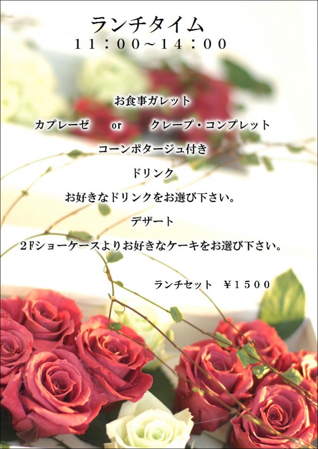 カフェ 投稿日2014.05.17 ランチ始めました。 この記事は、投稿から半年以上が経過しています。 料金やサービス内容など、現在のサービス内容と異なる場合がございます。 お腹いっぱいの大満足メニューに致しました。 お友達と一緒に素敵なカフェでランチはいかがですか? きっと楽しい時間が過ごせますよ(^^♪