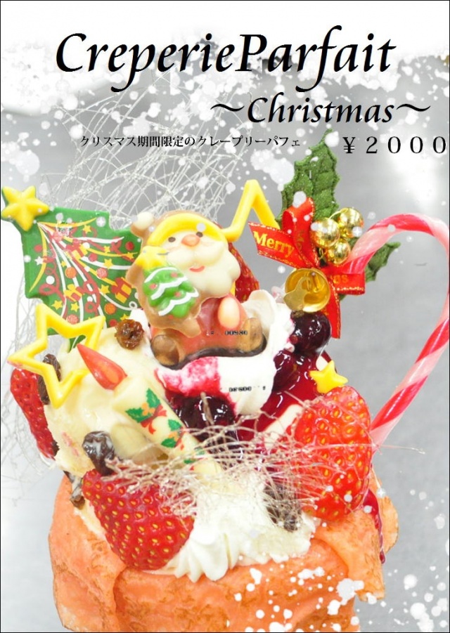 カフェ 投稿日2018.12.01 ◇Xmas限定パフェ◇ この記事は、投稿から半年以上が経過しています。 料金やサービス内容など、現在のサービス内容と異なる場合がございます。 クリスマス期間限定の【クレープリーパフェ】の登場です! デコレーションケーキのような わくわくしちゃう仕上げにしました( *´艸`) ラムレーズンのジェラートとベリーのソースがマッチした 豪華なパフェです。 12月3日から販売開始です!