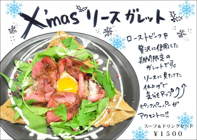 カフェ 投稿日2019.12.09 ◇Xmasリースガレット◇ この記事は、投稿から半年以上が経過しています。 料金やサービス内容など、現在のサービス内容と異なる場合がございます。 この時期だけの限定ガレットメニュー!! 昨年も人気だった為、今年もやります( *´艸`) ランチはもちろん 土日も提供致します。