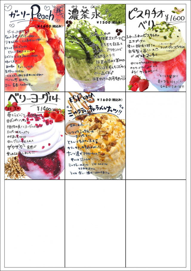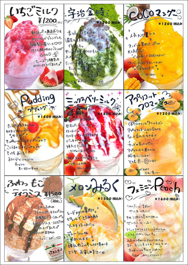 カフェ 投稿日2021.07.25 ◇かき氷メニュー◇ この記事は、投稿から半年以上が経過しています。 料金やサービス内容など、現在のサービス内容と異なる場合がございます。 ヴァイスのかき氷!! 只今のラインナップ( *´艸`) まだまだ増やしたい願望が・・・