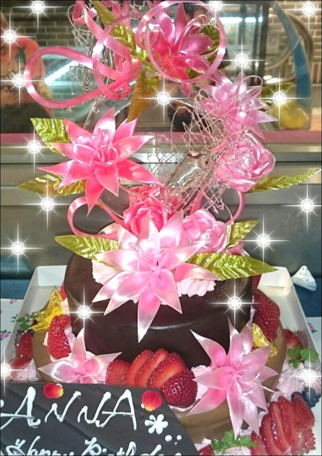 バースデーケーキ 投稿日2017.09.11 ◇飴細工のデコレーションケーキ◇ この記事は、投稿から半年以上が経過しています。 料金やサービス内容など、現在のサービス内容と異なる場合がございます。 ショコラ7号サイズ+チョコがけ5号サイズの2段デコレーション。 飴細工を豪華にというご注文でしたので 高さも出して華やかに仕上げました。