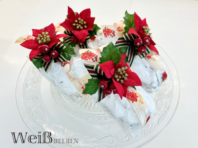 投稿日2023.11.21 ◇シュトーレン販売中です!◇ この記事は、投稿から半年以上が経過しています。 料金やサービス内容など、現在のサービス内容と異なる場合がございます。 毎年人気のシュトーレン、今年も販売しております!!! ドライフルーツとナッツの食感と、日に日に味わい深くなる生地の変化をお楽しみください(^^♪ ギフトにも喜ばれる華やかなポインセチアのラッピングで販売しております(*^^*) ぜひ、ご賞味ください♪