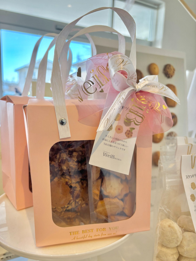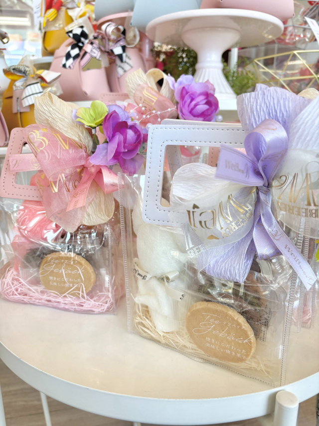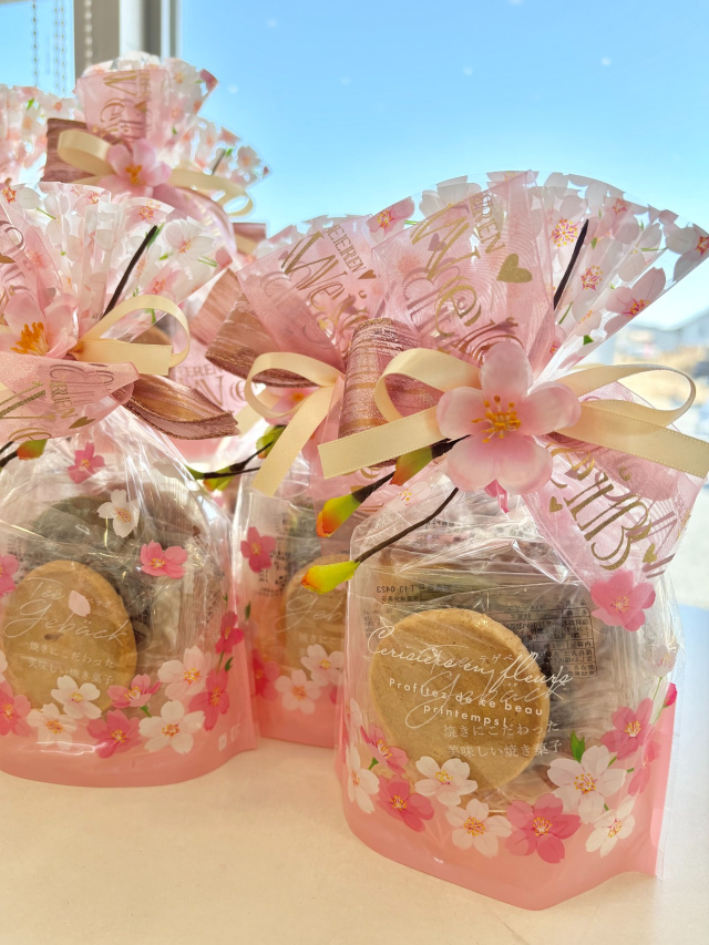 イベント 投稿日2025.03.07 ◇春&ホワイトデーギフトご用意しております◇ この記事は、投稿から半年以上が経過しています。 料金やサービス内容など、現在のサービス内容と異なる場合がございます。 桜柄のラッピングやパステルカラーのミニバッグに ヴァイスべーレンのこだわりの焼菓子を詰め合わせました(*^^*) どれも春ギフトやホワイトデーに贈りたくなる可愛さです(^^♪ ご予約やお取り置きも承っておりますので、 ぜひ一度、店頭でご覧くださいませ♪