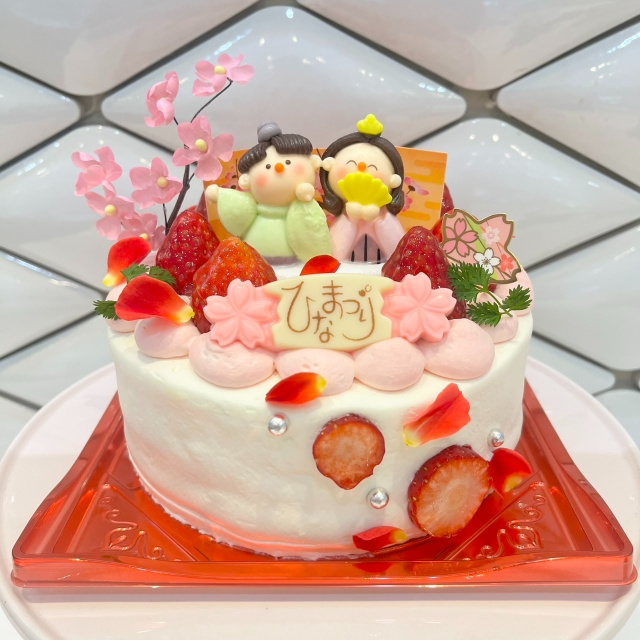 定番の苺のデコレーションをひなまつり飾りで華やかに仕上げました