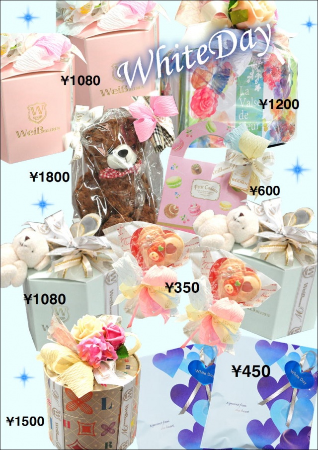 イベント 投稿日2018.03.08 ◇ホワイトデーラッピング◇ この記事は、投稿から半年以上が経過しています。 料金やサービス内容など、現在のサービス内容と異なる場合がございます。 女性が喜ぶ可愛らしい焼き菓子ラッピングを 豊富にご用意致しております。 また、季節限定商品【桜マドレーヌ】5個入りや 【和栗のテリーヌ】3本入りも ホワイトデーにおすすめの商品です。 ボンボンショコラなどチョコレート商品も 豊富にご用意致しております。 是非、足を運んでみて下さいね(^^♪
