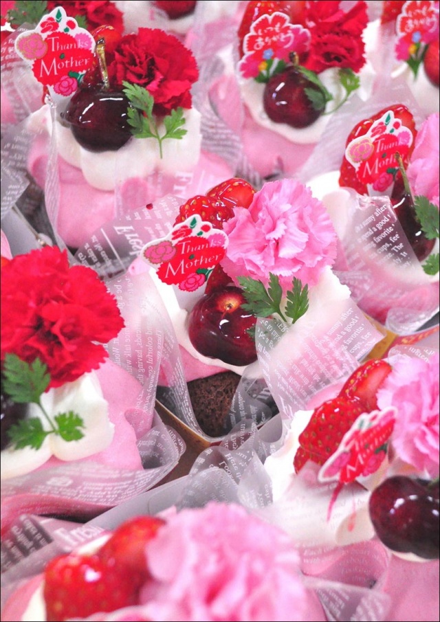 イベント 投稿日2020.05.09 ◇母の日のケーキ◇ この記事は、投稿から半年以上が経過しています。 料金やサービス内容など、現在のサービス内容と異なる場合がございます。 ショーケースは母の日カラーになっております。 食用カーネーションでデコレーションしておりますので ケーキとお花が一緒にプレゼントできますよ( *´艸`)