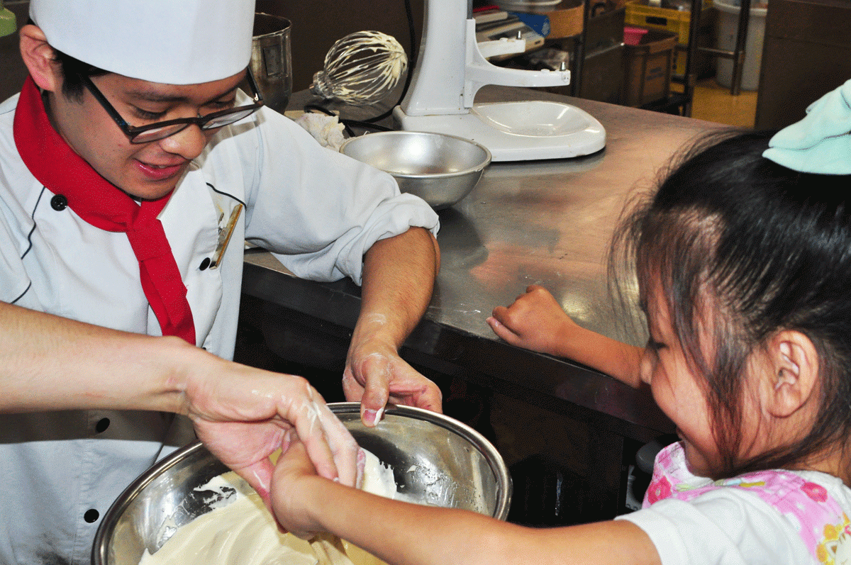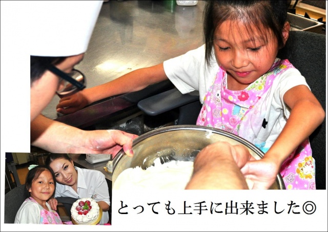 お知らせ 投稿日2015.09.01 【キミチャレ】で体験!! この記事は、投稿から半年以上が経過しています。 料金やサービス内容など、現在のサービス内容と異なる場合がございます。 自分で考えた【フルーツいっぱいの綺麗なケーキが作りたい】 そんな思いを胸に 先日、ヴァイスベーレンに笑顔がとっても素敵な あやめちゃんが車いすに乗って 元気いっぱいで来てくれました(*^▽^*) もちろん、スポンジケーキを焼くところからのスタートです。 目を輝かせながら、真剣に取り組んでいました。 なんだかんだで3時間くらいかかりましたけど とってもかわいいデコレーションケーキを作ることが出来ました。 長い時間大変だったね(*´ω`*) でも、と~っても喜んでくれたので 嬉しかったです。 また、遊びに来てね~!!