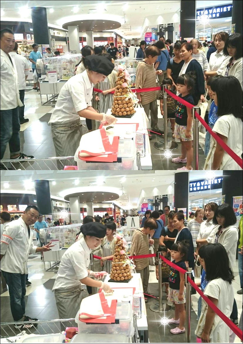 お知らせ 投稿日2016.08.28 ◇デモンストレーション この記事は、投稿から半年以上が経過しています。 料金やサービス内容など、現在のサービス内容と異なる場合がございます。 コンテストで制作された作品が展示してある 一宮のアピタテラスウォークで本日 飴細工のデモンストレーションを行ってきました。 制作2時間でしたが、たくさんのお客様に興味をもって頂き 感激です。 本日はクロカンブッシュに飴細工でデコレーションしてきました。