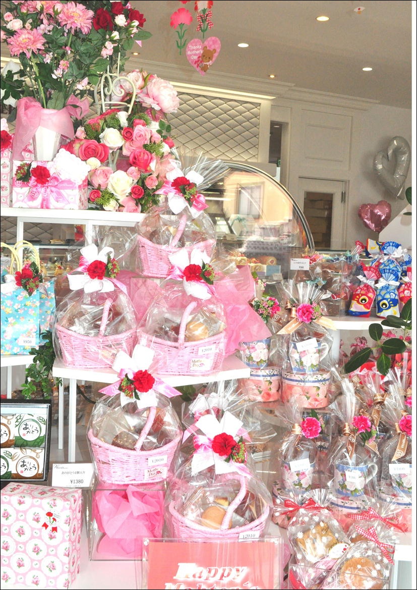 焼き菓子 投稿日2014.04.11 お母さんいつもありがとう! この記事は、投稿から半年以上が経過しています。 料金やサービス内容など、現在のサービス内容と異なる場合がございます。 5月の第2日曜日 5月11日は「母の日」です。 たくさんのラッピング商品をご用意致しました。 価格も300円~2000円くらいまでの商品をご用意しております。 お立ち寄りの際には、是非一度ご覧ください。 2Fカフェスペースにあるショーケースも 母の日に特別なラッピングをご用意致しました。 「ブリザードフラワー&焼き菓子&紅茶」のセットなどなど 母の日用のラッピングも承っております。