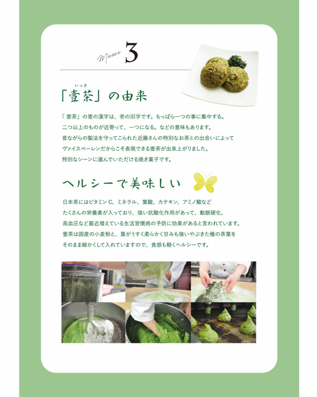 焼き菓子 投稿日2021.05.02 ◇長久手のお手土産◇ この記事は、投稿から半年以上が経過しています。 料金やサービス内容など、現在のサービス内容と異なる場合がございます。 長久手市、唯一の長久手製茶工場の近藤さんの希少なお茶の葉を そのままクッキーに練り込んで焼き上げた ヴァイスベーレンオリジナルの商品です。 縁起の良さと健康をも考えたおもたせ商品。 コロナ時代に入り、お付き合いが難しい世の中ではありますが お菓子を送ったり、プレゼントすることで想いが届きますように・・・
