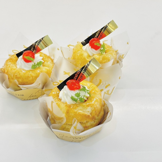 洋酒のシロップが浸み込んだブリオッシュ生地とカスタードクリームを合わせた、大人な味わいのケーキです。