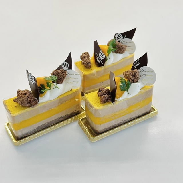 ミルクチョコレートのムースとマンゴーを組み合わせたなめらかなムースケーキです。