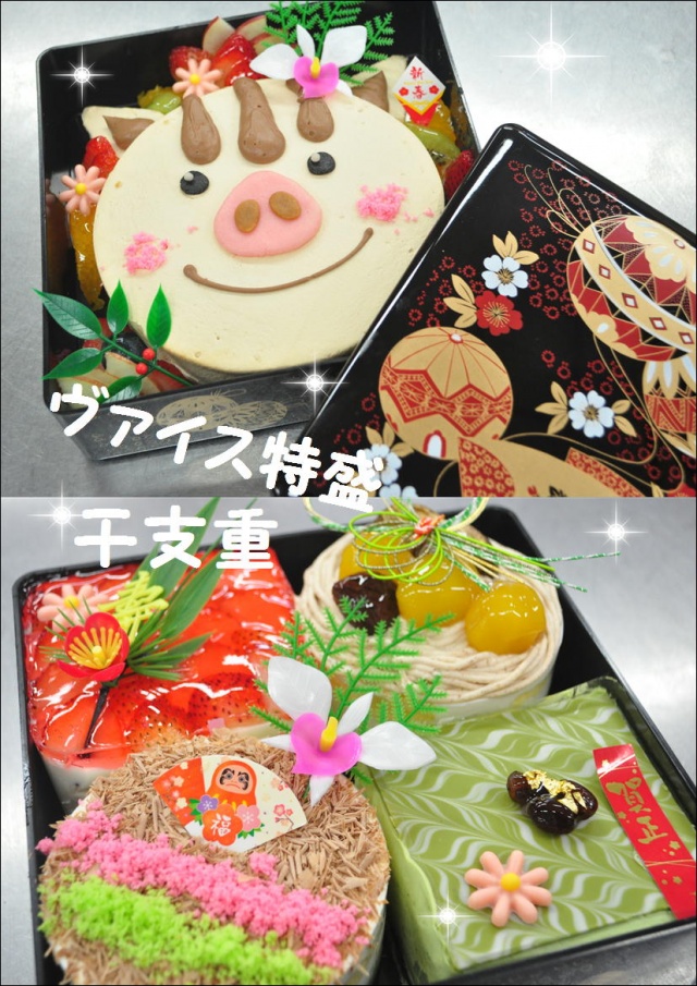 季節のケーキ 投稿日2018.11.03 ◇ヴァイス特盛干支重◇ この記事は、投稿から半年以上が経過しています。 料金やサービス内容など、現在のサービス内容と異なる場合がございます。 ついにご予約開始です!! 【ヴァイス特盛干支重』 ¥6480(税込み) 限定50箱ですので ご予約はお早めにお願い致します( *´艸`) お正月、ご家族揃って是非お召し上がりいただきたいです(^^♪