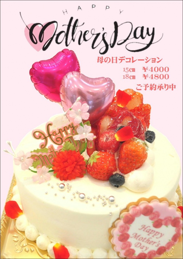 季節のケーキ 投稿日2019.04.13 ◇【母の日】のケーキ◇ この記事は、投稿から半年以上が経過しています。 料金やサービス内容など、現在のサービス内容と異なる場合がございます。 5月12日 日曜日は【母の日】です。 日頃の感謝の気持ちを込めて 美味しいケーキをプレゼントしてみては いかがですか( *´艸`)