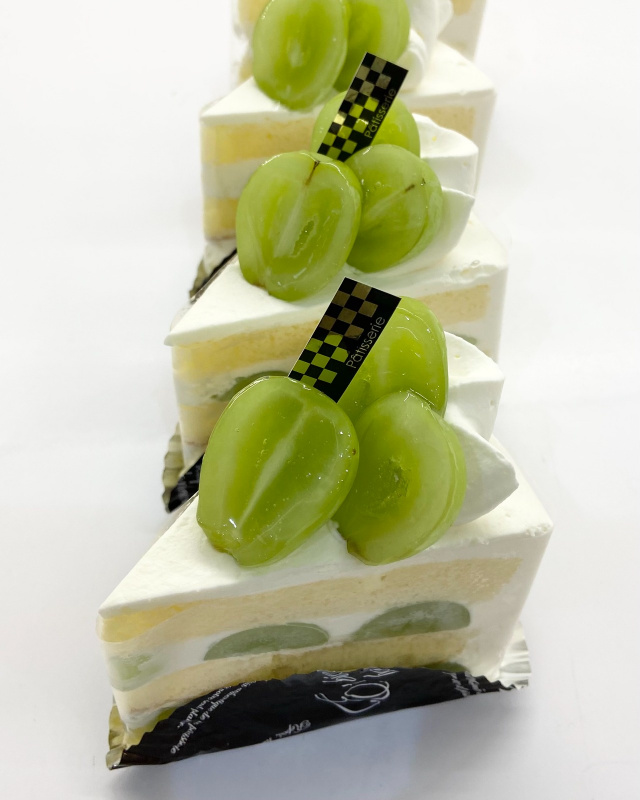 季節のケーキ 投稿日2021.09.18 ◇シャインマスカットショート◇ この記事は、投稿から半年以上が経過しています。 料金やサービス内容など、現在のサービス内容と異なる場合がございます。 秋の新商品。 しっとりとしたスポンジにすっきりした味わいの生クリームと旬のシャインマスカットをサンドしました。